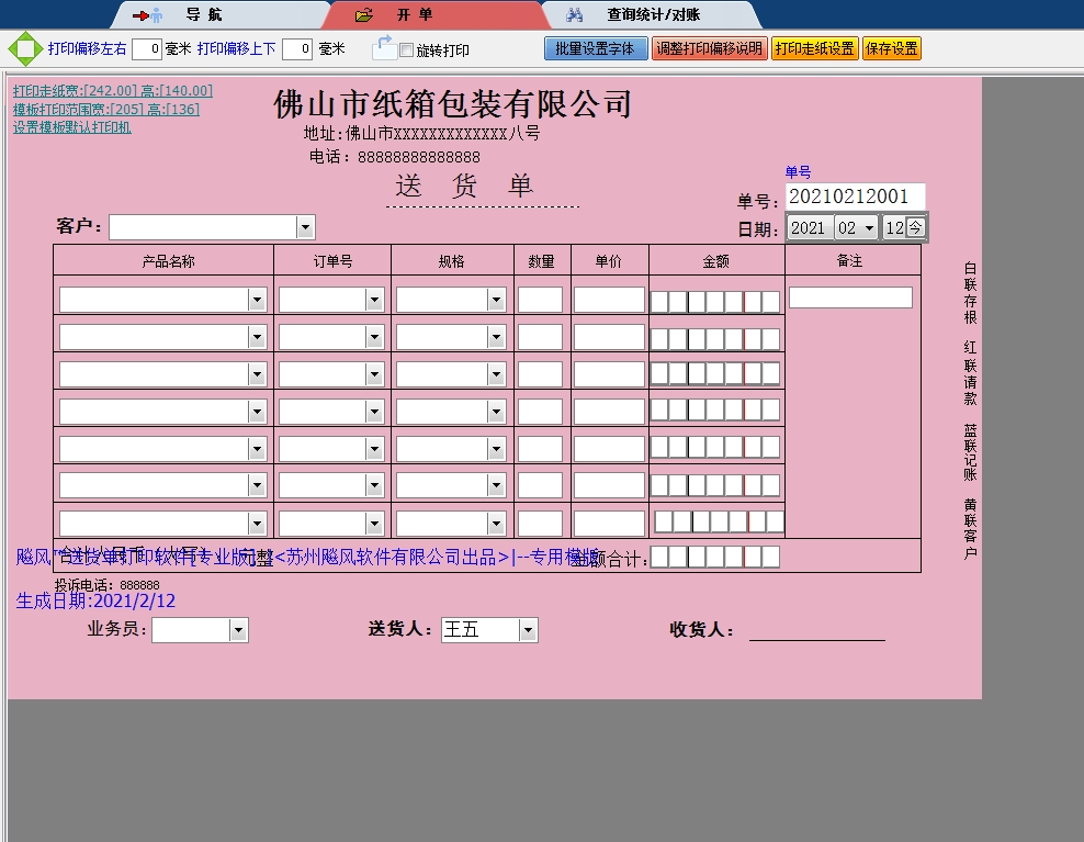 送货单打印、销售单打印、出货单打印、发货单打印、收款收据打印